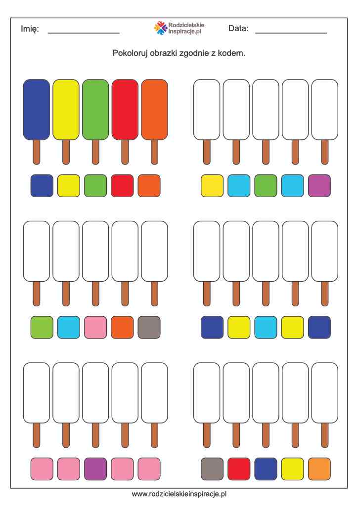 Karty pracy podzielone zostały na kilka rodzajów, ale na każdej z nich dziecko musi pokolorować obrazki według wzoru. Ważny jest zarówno kolor, jak i kolejność. Takie ćwiczenia są niezwykle rozwijające dla przedszkolaków i uczniów klasy 1. Zapraszamy do pobierania pliku PDF.